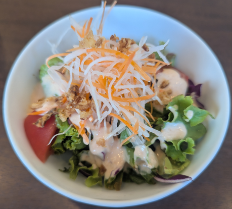 席に座ってメニューを観てビーフ黒カレーの中辛を注文。まずサラダがやってきました。サラダは食べずに待っているとカレーライスがやってきました。まず見た目がインパクトあります。黒いカレールーに十六穀米で見た目は真っ黒です。まずカレールーをひと口美味しいです。スパイシーで程よい辛さで美味しいです。穀米も食感が感じられて面白いです。具の牛肉がトロトロでとても美味しかったです。カレールーの量がたっぷりあるので食べ応えがあって良かったです。サラダでお口をさっぱりさせながらいただきました。お店の雰囲気も良くまた機会があったら寄ってみたいと思います。美味しかったです。