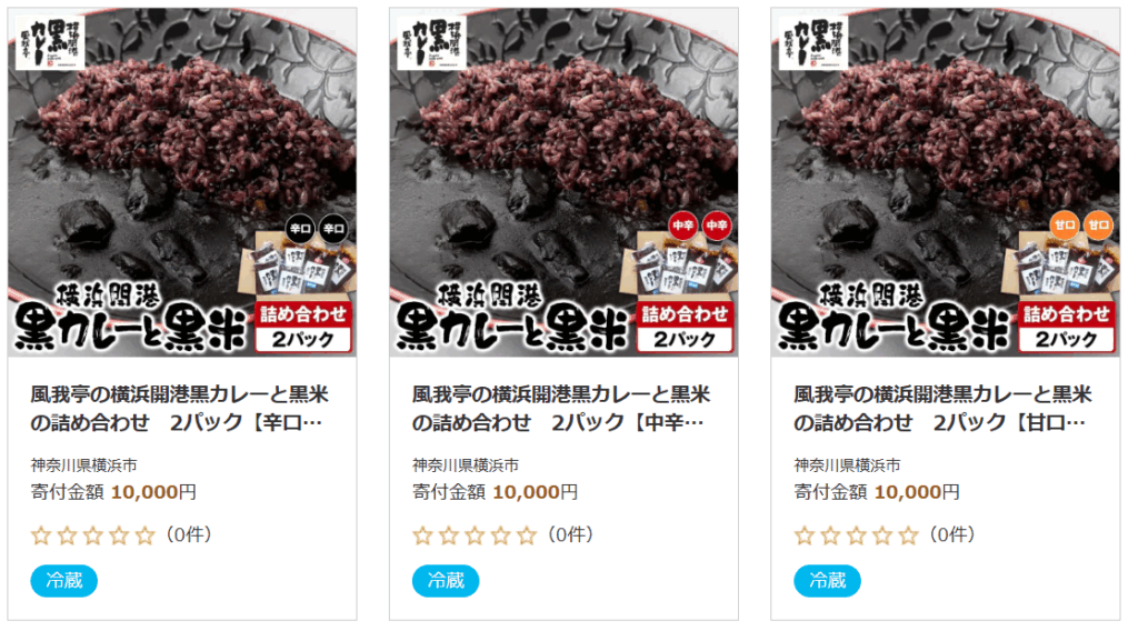 そんな「風我亭横浜開港黒カレー」ですが、「ふるさと納税」を使って横浜市に1万円の寄付をすると「黒カレーと黒米2パック」の返礼品(横浜市在住の方を除く)がもらえます。