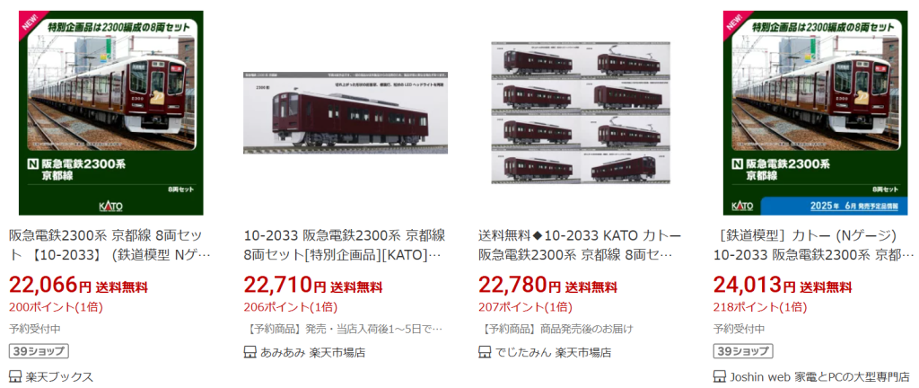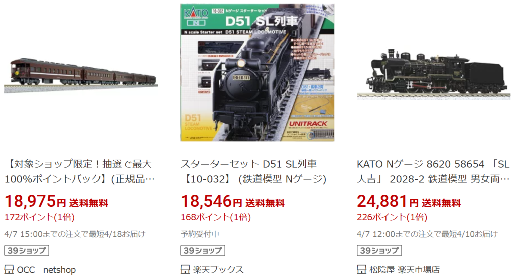 先ずはみてください。「楽天市場」の「鉄道模型」の販売サイトです。